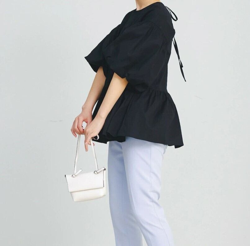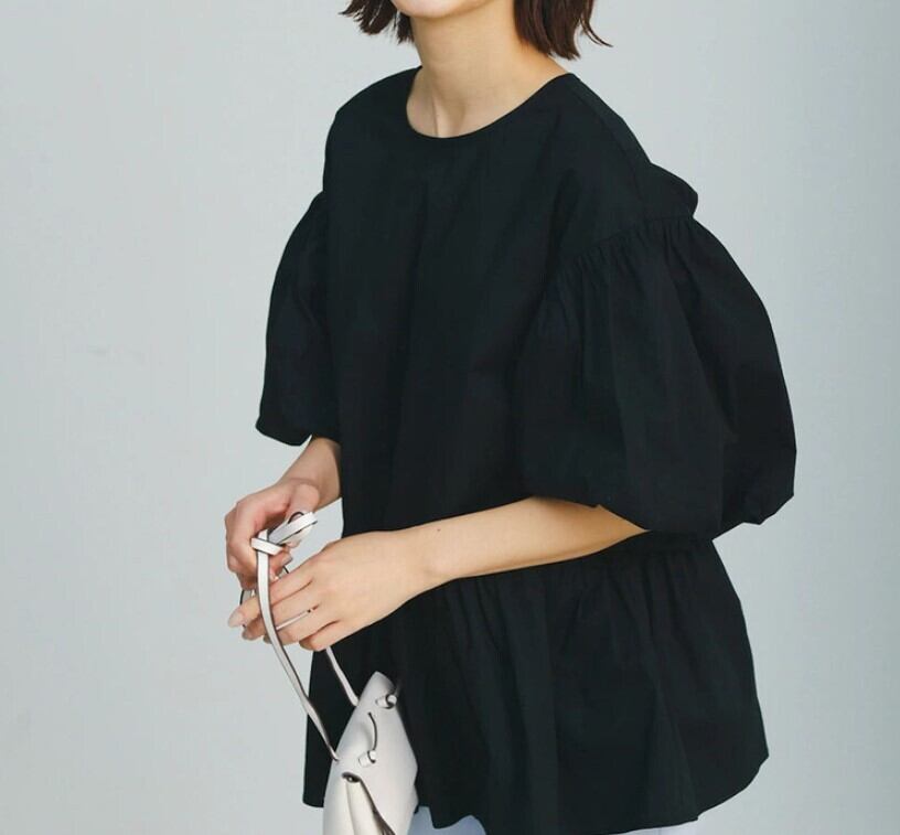 トップス レディース 2色 カットソー シャツ ブラウス パフスリーブ ラウンドネック フレア かわいい 大人可愛い きれいめ シンプル カジュアル 清楚 フェミニン おしゃれ お洒落 おとな ナチュラル こなれ感 ラブリー キュート ガーリー リラックス 爽やか 主役級 存在感 無地 OL 通勤 学生 通学 デート お出かけ 女子会 M L ホワイト 白 ブラック 黒 春 夏 10代 20代 30代 40代 韓国 韓国系 着回し 普段使い 体型カバー 楽ちん トレンド 流行 インスタ 送料無料