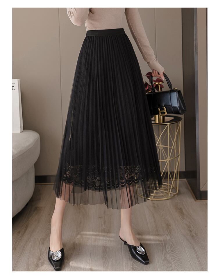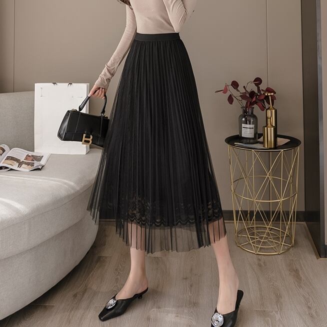 スカート レディース 2色 チュールスカート ミモレ丈 プリーツ 総レース 透け感 メッシュ チュール シフォン 切り替え 裏地付き ミモレ丈 Aライン ウエストゴム かわいい 大人可愛い きれいめ フェミニン おしゃれ お洒落 おとな ナチュラル キュート ガーリー 学生 通学 デート お出かけ 女子会 旅行 ブラック アプリコット 春 夏 秋 冬 10代 20代 30代 韓国 韓国系 着回し 普段使い 重ね着 体型カバー コーデ 韓国ファッション フレンチファッション キュート ワンサイズ 送料無料