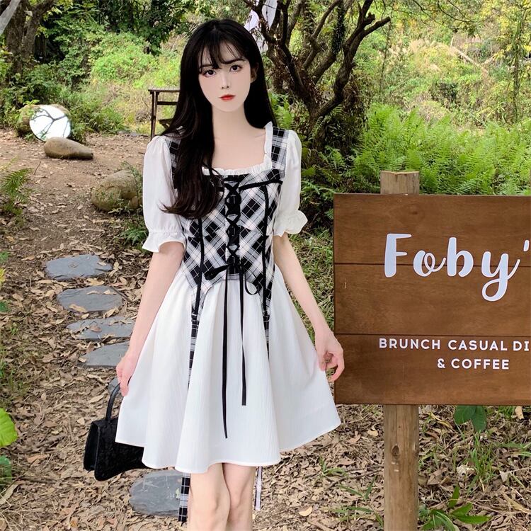 ワンピース レディース フェイクツーピース ミニワンピース ドッキングワンピース ミニ丈 ショート丈 膝上 半袖 スクエアネック 切り替え ドッキング 裾フレア レースアップ フリル かわいい 大人可愛い カジュアル 清楚 フェミニン おしゃれ 綺麗 お嬢様 こなれ感 ラブリー キュート ガーリー 個性的 モダン アンティーク 抜け感 華やか 存在感 チェック柄 学生 デート お出かけ 女子会 休日 S M L XL 2XL 3XL 4XL 大きいサイズ 春 夏 10代 20代 韓国 韓国系 送料無料