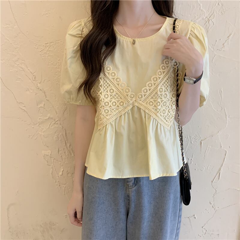 トップス レディース シャツ ブラウス カットソー ショート丈 半袖 パフスリーブ ラウンドネック ペプラム かわいい 大人可愛い きれいめ シンプル カジュアル 上品 清楚 フェミニン シック おしゃれ 綺麗 おとな ナチュラル こなれ感 ラフ キュート ガーリー ルーズ 抜け感 爽やか 存在感 無地 OL 通勤 学生 通学 デート お出かけ 女子会 休日 散歩 フリーサイズ ホワイト グリーン イエロー ブルー 春 夏 10代 20代 30代 40代 韓国 韓国系 着回し 普段使い 楽ちん 送料無料