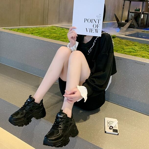 スニーカー レディース 2色 厚底 PU メッシュ ダッドスニーカー かわいい 大人可愛い シンプル カジュアル おしゃれ かっこいい クール おとな ラフ スポーティー キュート ガーリー 抜け感 22.5cm 23.0cm 23.5cm 24.0cm 24.5cm 25.0cm ブラック ホワイト 無地 オールシーズン 通勤 学生 通学 デート お出かけ 運動 アウトドア BBQ キャンプ 街歩き 10代 20代 30代 ママ 韓国系 普段使い モテ 送料無料