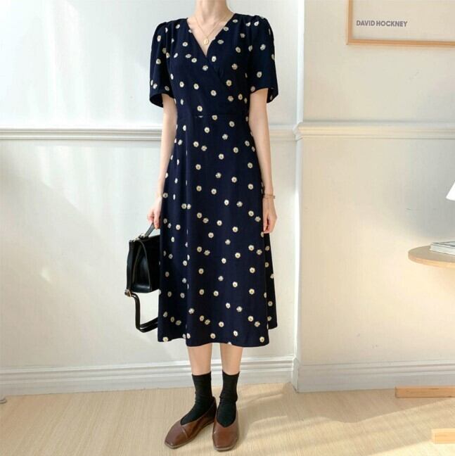 ワンピース レディース ロング丈 半袖 カシュクール Vネック かわいい 大人可愛い きれいめ 上品 エレガント 清楚 フェミニン おしゃれ お洒落 綺麗 お嬢様 おとな ナチュラル こなれ感 ラブリー キュート ガーリー レトロ ロマンチック 抜け感 華やか 主役級 存在感 花柄 小花柄 フラワー OL 通勤 学生 通学 デート お出かけ 女子会 カフェ巡り 街歩き お買い物 M L XL 2XL 3XL 4XL 大きいサイズ ネイビー 夏 10代 20代 30代 韓国 韓国系 送料無料