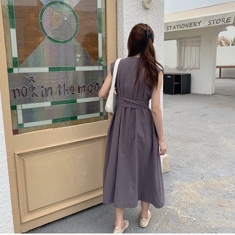 ワンピース レディース ロングワンピース フリーサイズ グレー ホワイト ブルー ネイビー ブラック カラバリ 無地 Vネック ノースリーブ フレア Aライン ロング ウエストマーク ハイウエスト スタイルアップ 脚長効果 体型カバー ゆったり シンプル きれいめ カジュアル フェミニン ガーリー 上品 大人可愛い おしゃれ 普段使い イベント デート お出かけ 女子会 休日 旅行 リゾート こなれ感 ファッション コーデ モテ サマードレス ママ 20代 30代 40代 50代 春 夏 送料無料