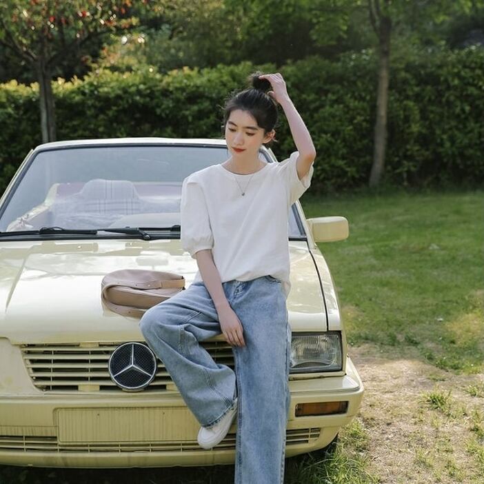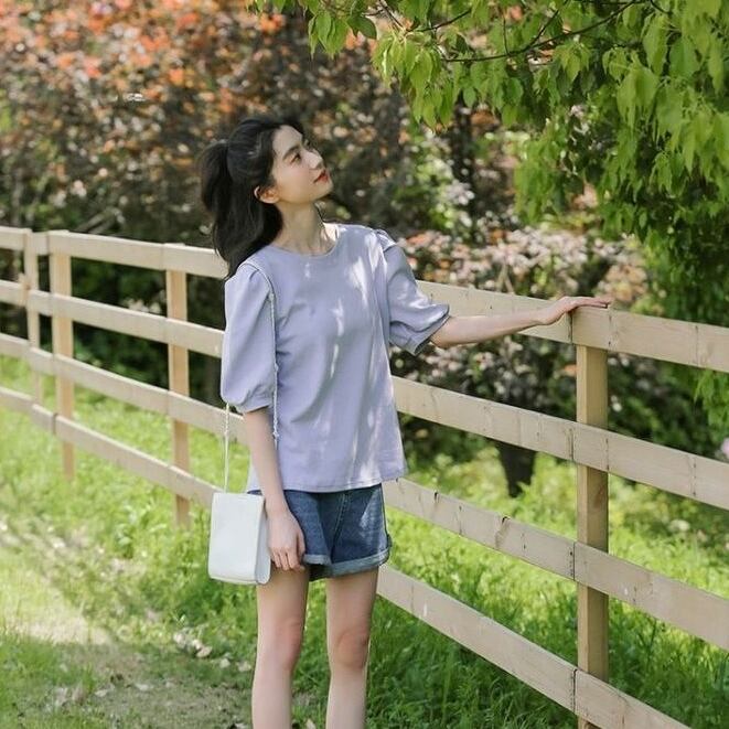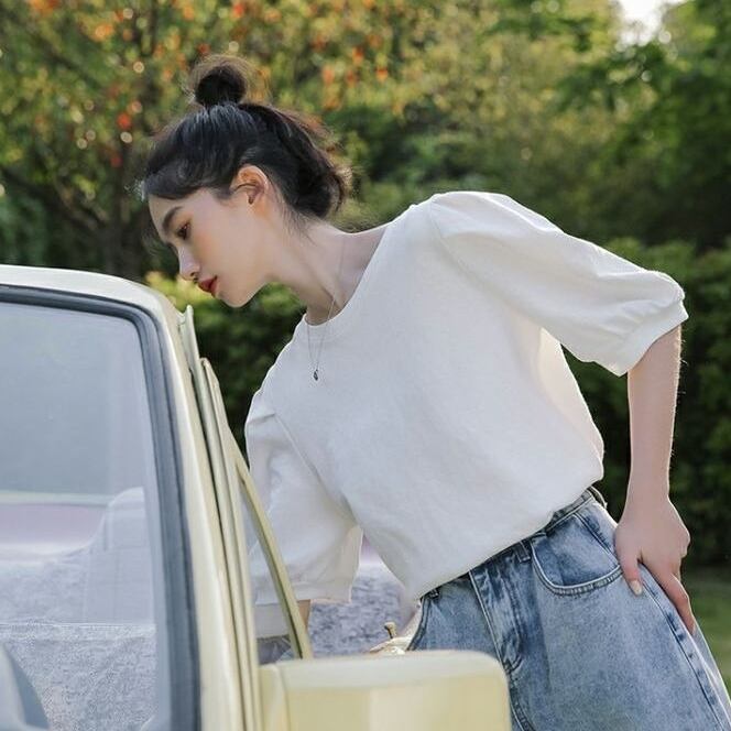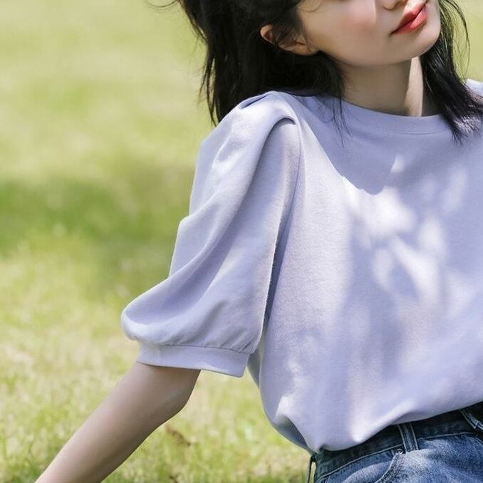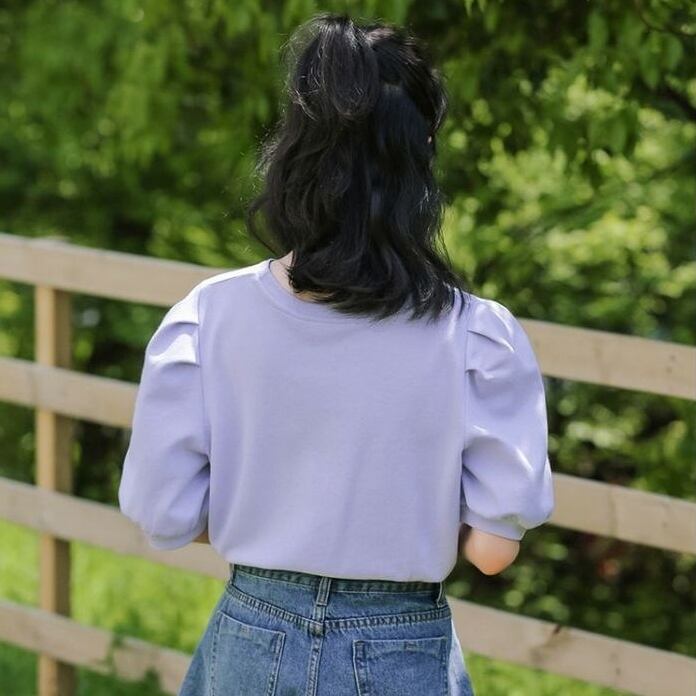 ベーシックながらパフスリーブがガーリーで個性的なデザイン。