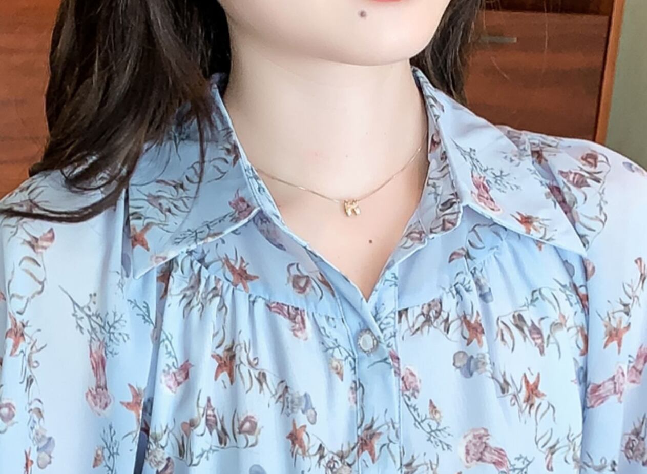 ふんわりとしたシフォン生地と上品な花柄が大人っぽい雰囲気のブラウスです^^