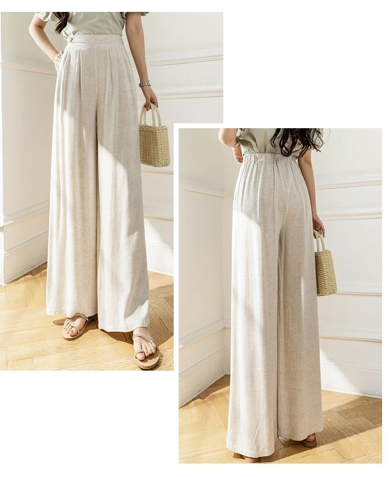 パンツ レディース ワイドパンツ 2カラー S M L XL 2XL アプリコット ブラック カラバリ 綿 麻 ナチュラル 涼しげ ロングパンツ ボトムス ズボン 無地 ウエストゴム ポケット 楽ちん ゆったり ルーズ ハイウエスト 脚長効果 スタイルアップ 体型カバー 送料無料 モテ 美脚 お出かけ デート お買い物 旅行 リゾート 普段使い 大人可愛い おさんぽ シンプル カジュアル ガーリー 上品 おしゃれ 大人女子 韓国 春 夏 秋 20代 30代 40代 50代 サイズ展開豊富 大きいサイズ