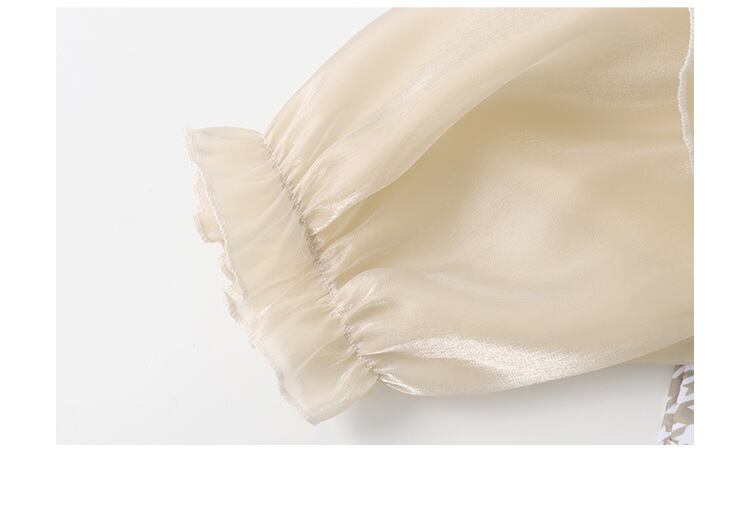 お洒落な千鳥格子柄に上品なパール、フリルやパフスリーブと大人可愛いが詰まった一着♡