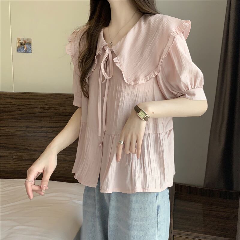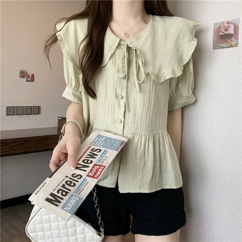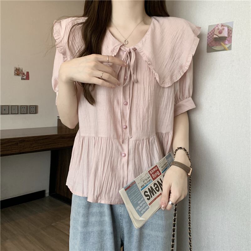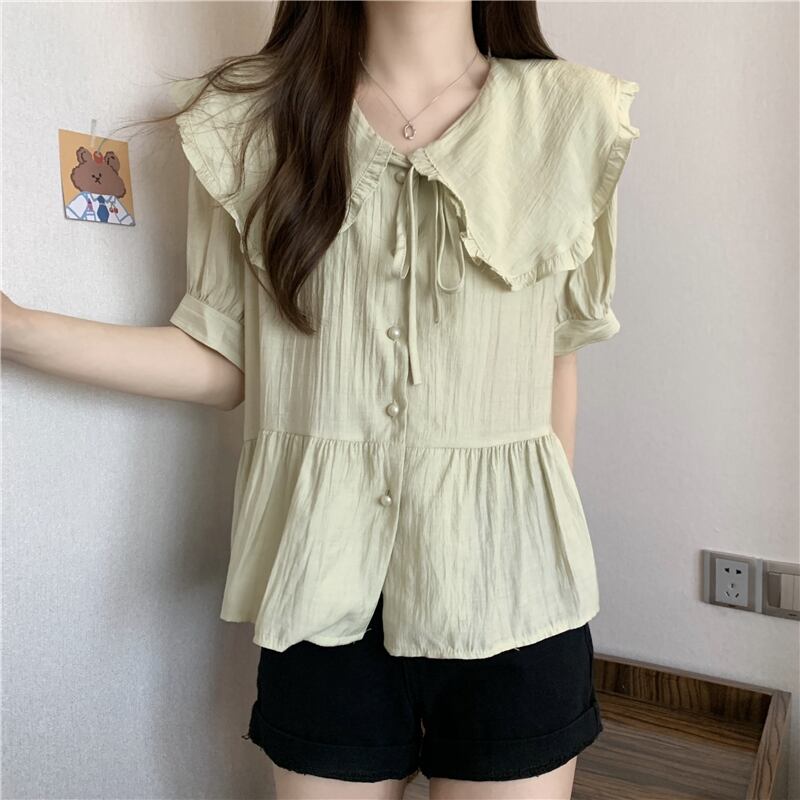 トップス レディース シャツ 襟付きブラウス ネルシャツ L XL 2XL 3XL 4XL 大きいサイズ ラージカラー ドールカラー フリル リボン クルーネック ホワイト グリーン ピンク ニュアンスカラー 半袖 襟付き かわいい 大人可愛い シンプル カジュアル 大人 おしゃれ お洒落 かっこいい レトロ ガーリー リラックス ナチュラル こなれ感 ラフ ゆったり 春 秋 冬 10代 20代 30代 通勤 OL 通学 ママ デート お出かけ 女子会 休日 旅行 着回し 普段使い 韓国系 送料無料
