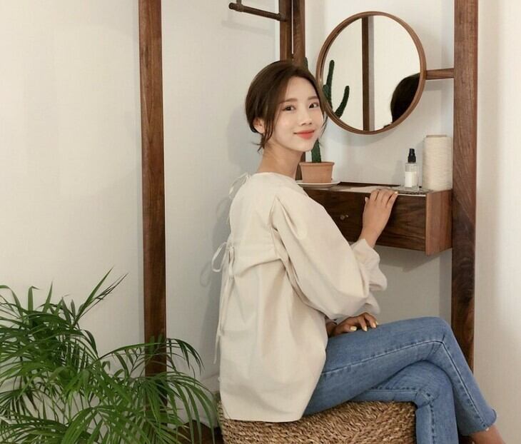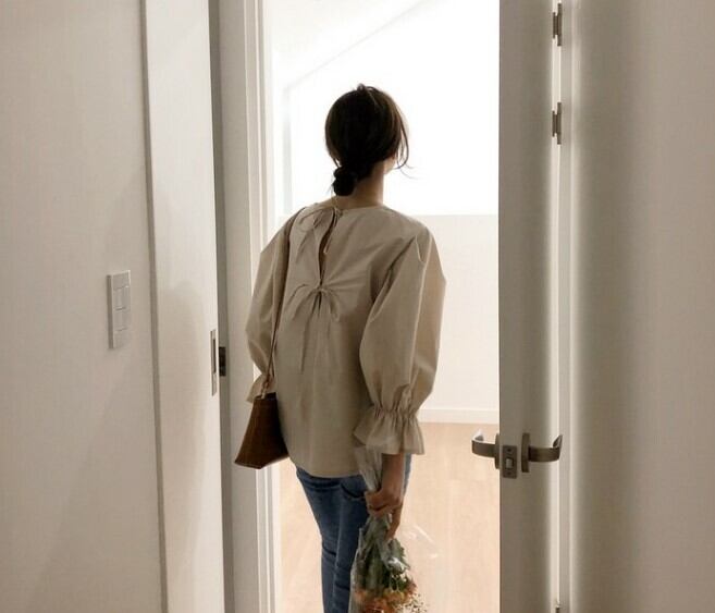 きゅっと絞った袖口とバックリボンが可愛いブラウスです^^