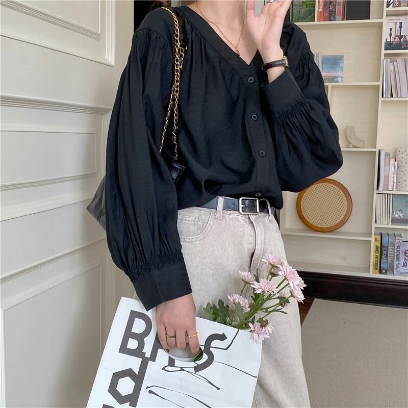 トップス レディース 2色 シャツ ブラウス 長袖 ノーカラー Vネック かわいい 大人可愛い きれいめ 上品 エレガント 清楚 フェミニン おしゃれ お洒落 おとな ナチュラル こなれ感 個性的 レトロ 抜け感 爽やか 主役級 存在感 オフィス ビジネス OL 通勤 学生 通学 デート お出かけ 女子会 休日 フリーサイズ ベージュ ブラック 黒 春 20代 30代 40代 50代 韓国 韓国系 着回し 普段使い 体型カバー ファッション コーデ モテ 流行 インスタ 送料無料