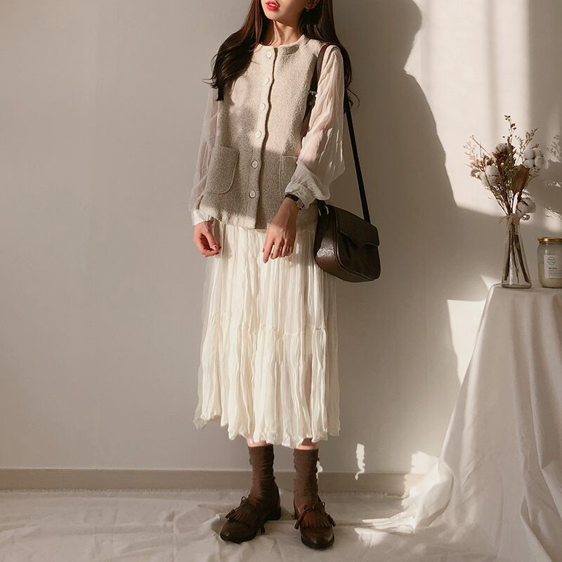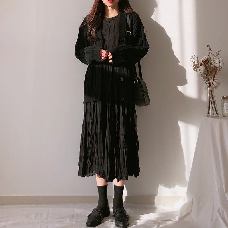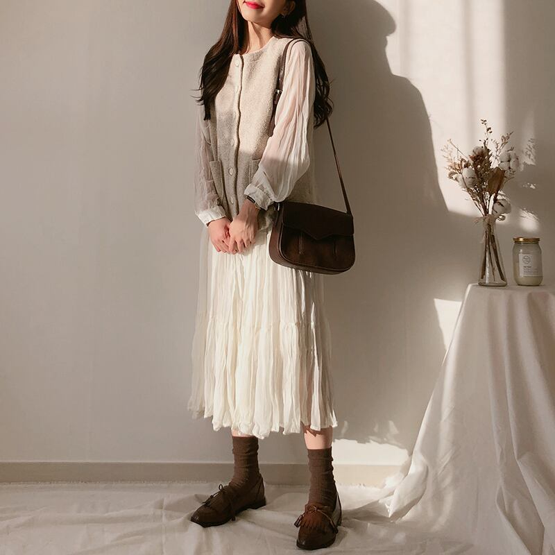 シワ感のある軽やかなクリンクルプリーツ生地が可愛いシフォンワンピース。