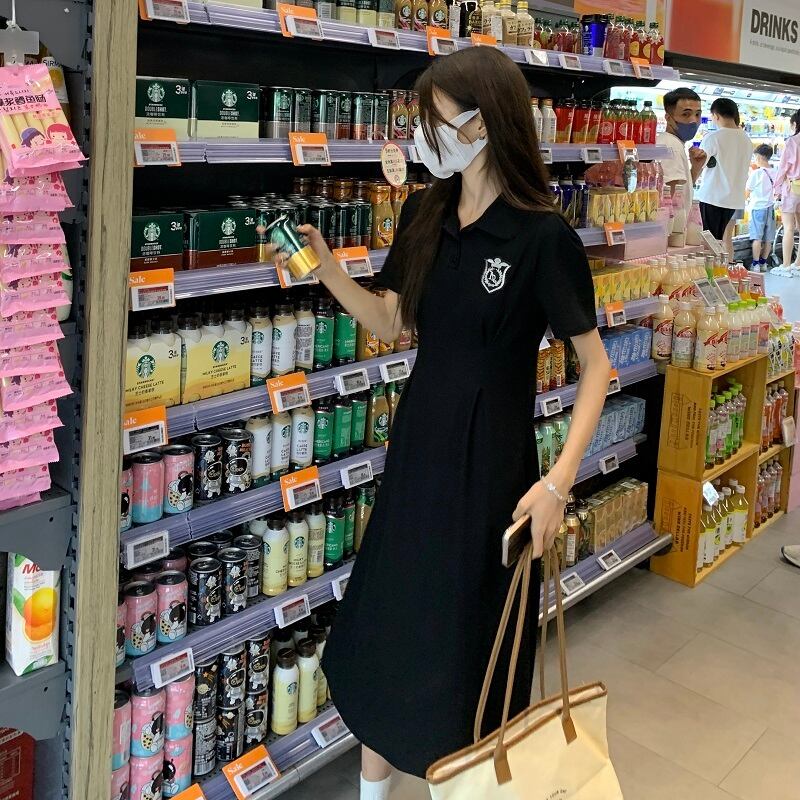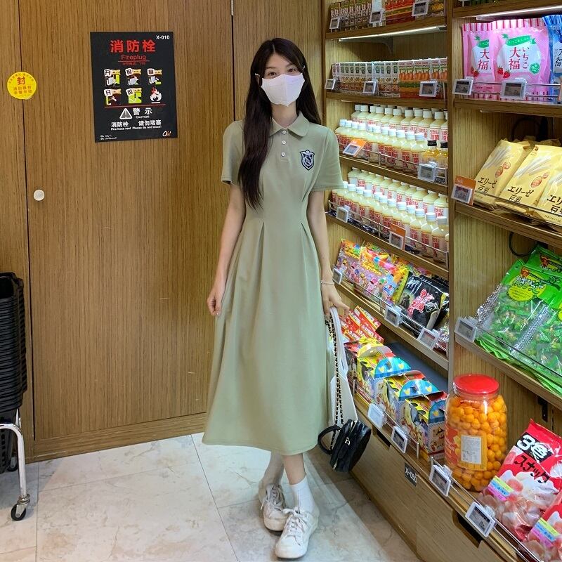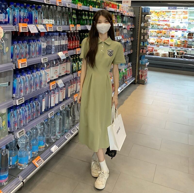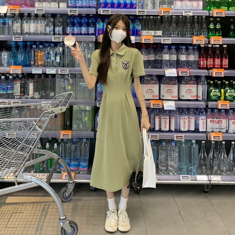 女らしく着こなせるデザインのポロシャツ風Aラインワンピース。
