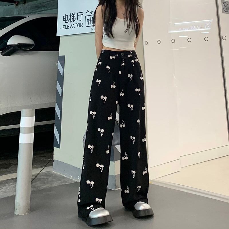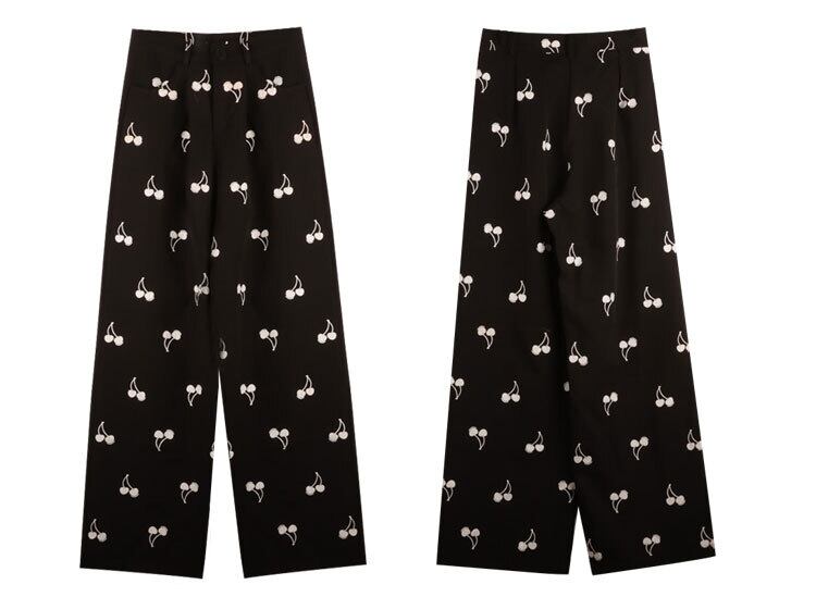 パンツ レディース ワイドパンツ ロングパンツ カジュアルパンツ 柄 ロング丈 可愛い かわいい 大人可愛い きれいめ フェミニン エレガント 上品 おしゃれ お洒落 おとな ナチュラル 抜け感 通勤 ラブリー キュート ガーリー OL 学生 通学 デート お出かけ 女子会 旅行 黒 ブラック 春 夏 さくらんぼ チェリー 10代 20代 30代 40代 韓国 韓国系 着回し デイリー 普段使い ゆったり 体型カバー コーデ 韓国ファッション 旅行 ライブ コンサート リゾート 海 S M L 送料無料