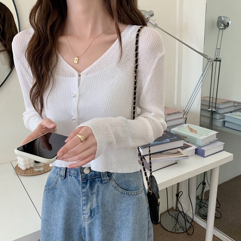 トップス レディース ニット カーディガン ボレロ サマーニット クロップド丈 長袖 Vネック フロント ボタン 透け感 タイト スリム かわいい 大人可愛い カジュアル ナチュラル こなれ感 抜け感 おしゃれ お洒落 綺麗 ラブリー ガーリー キュート 薄手 楽ちん ホワイト 白 ブラック 黒 ブルー 青 イエロー 黄色 OL 通勤 学生 デート お出かけ 女子会 休日 イベント 公園 フリーサイズ 春 夏 10代 20代 30代 韓国 韓国系 着回し 普段使い モテ トレンド ファッション 送料無料