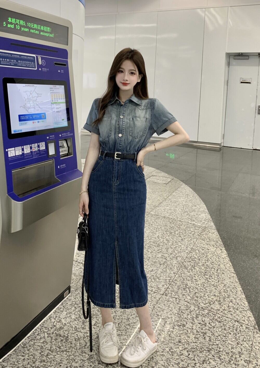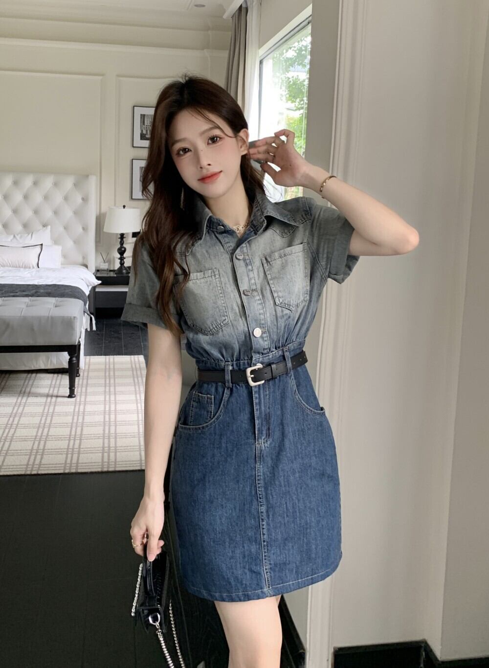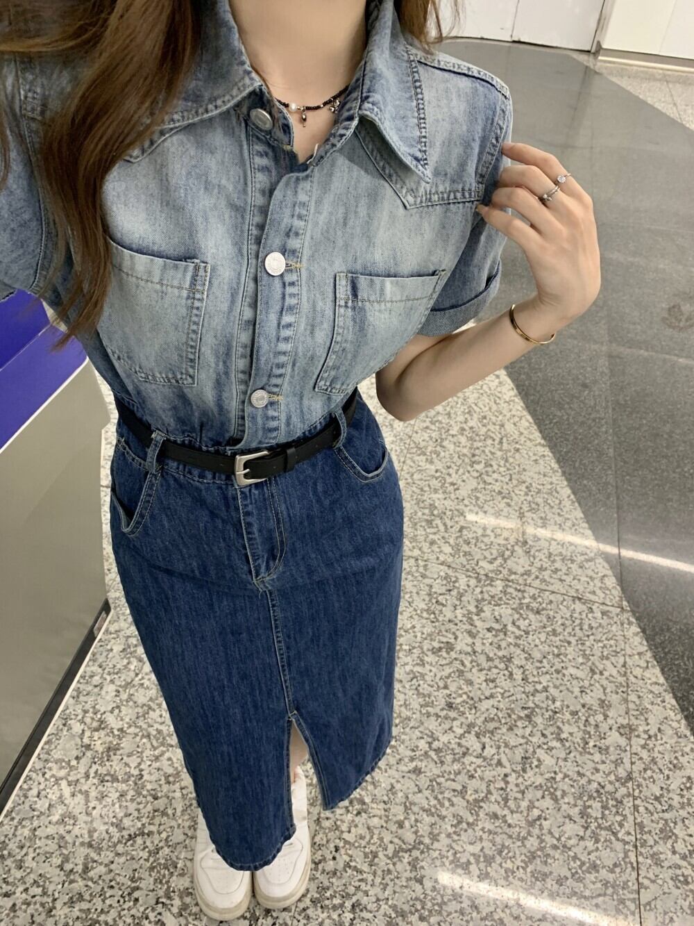 ワンピース レディース デニムワンピース デニムスカート ショート丈 ロング丈 半袖 襟付き ベルト スリット デニム タイト グラデーション かわいい 大人可愛い カジュアル レトロ おしゃれ お洒落 ラブリー キュート ガーリー 主役級 存在感 こなれ感 抜け感 フェミニン 無地 春 夏 10代 20代 30代 40代 学生 通学 デート お出かけ 女子会 休日 着回し 普段使い 韓国 韓国系 ファッション コーデ スタイル モテ 体型カバー 脚長 トレンド 流行 インスタ映え S M L 送料無料
