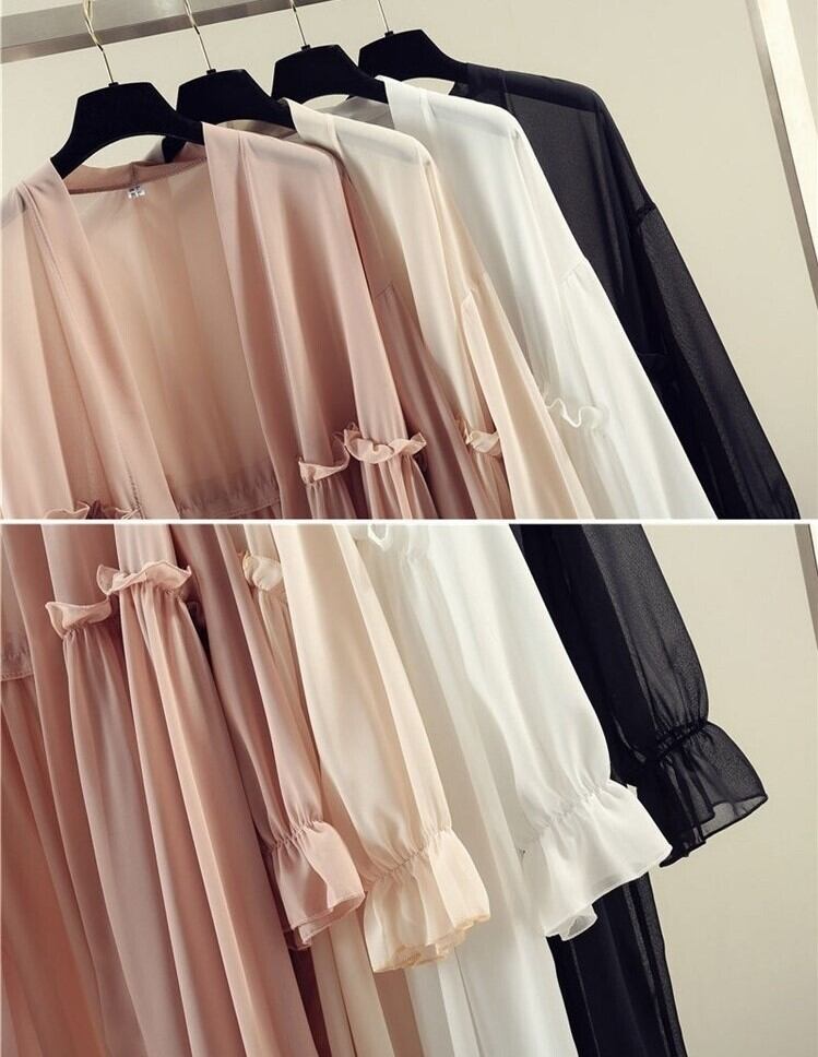 トップス レディース カーディガン ボレロ ロング ロング丈 長袖 トランペットスリーブ ゆったり シフォン フリル かわいい 大人可愛い きれいめ 上品 清楚 フェミニン おしゃれ 綺麗 お嬢様 おとな こなれ感 ラブリー キュート ガーリー 個性的 リラックス アンティーク 抜け感 無地 デート お出かけ 女子会 休日 リゾート 旅行 S M L XL 2XL 3XL 4XL ホワイト ブラック ピンク アプリコット 春 夏 10代 20代 30代 韓国 韓国系 普段使い 着回し モテ 送料無料