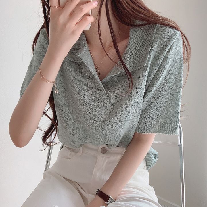 トップス レディース 5色 サマーニット ポロシャツ ワンサイズ ショート丈 半袖 かわいい 大人可愛い きれいめ シンプル カジュアル おしゃれ セクシー おとな ナチュラル こなれ感 ラフ スポーティー ラブリー キュート ガーリー 爽やか 無地 学生 通学 デート お出かけ 女子会 お泊まり 休日 運動 ジム ヨガ 散歩 カフェ巡り 街歩き ホワイト ピンク ブルー パープル グリーン 春 夏 10代 20代 30代 ママ 韓国系 着回し ファッション コーデ モテ 送料無料