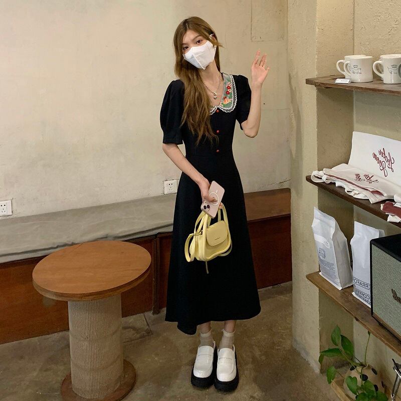 ワンピース レディース ロングワンピース M L XL 2XL 3XL 4XL半袖 パフスリーブ Vネック 刺繍 ハイウエスト かわいい 大人可愛い きれいめ 上品 エレガント 清楚 フェミニン おしゃれ お洒落 ナチュラル こなれ感 ロマンチック 抜け感 華やか 主役級 存在感 小花柄 フラワー OL 通勤 学生 通学 デート お出かけ 女子会 リゾート 旅行 カフェ巡り お買い物 春 夏 10代 20代 30代 韓国 韓国系 着回し 普段使い 体型カバー モテ トレンド 流行 インスタ 送料無料