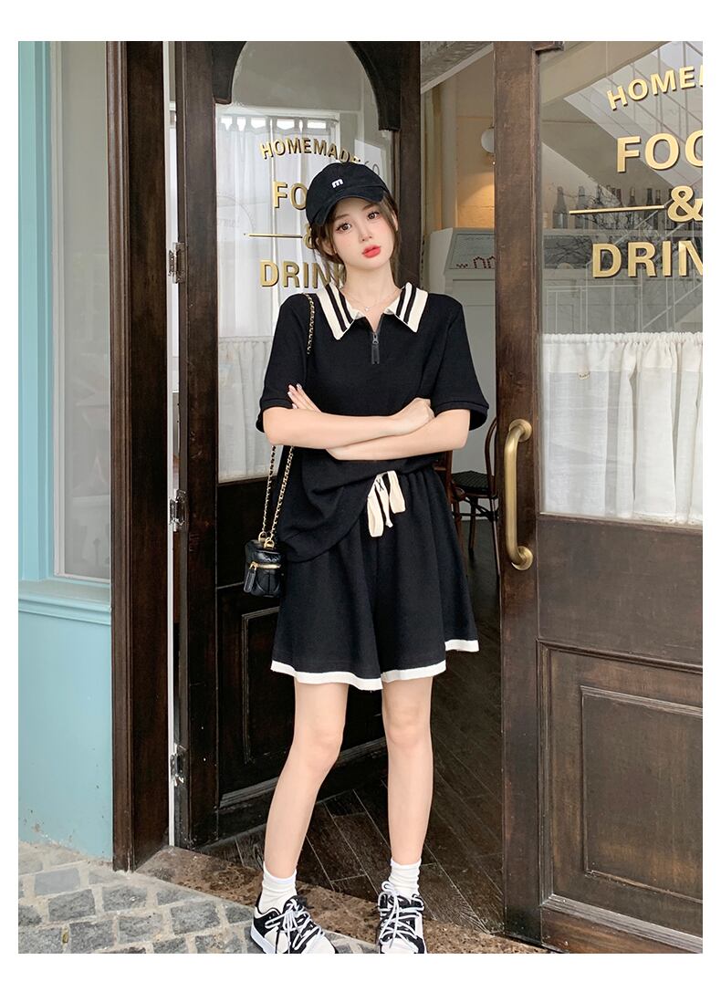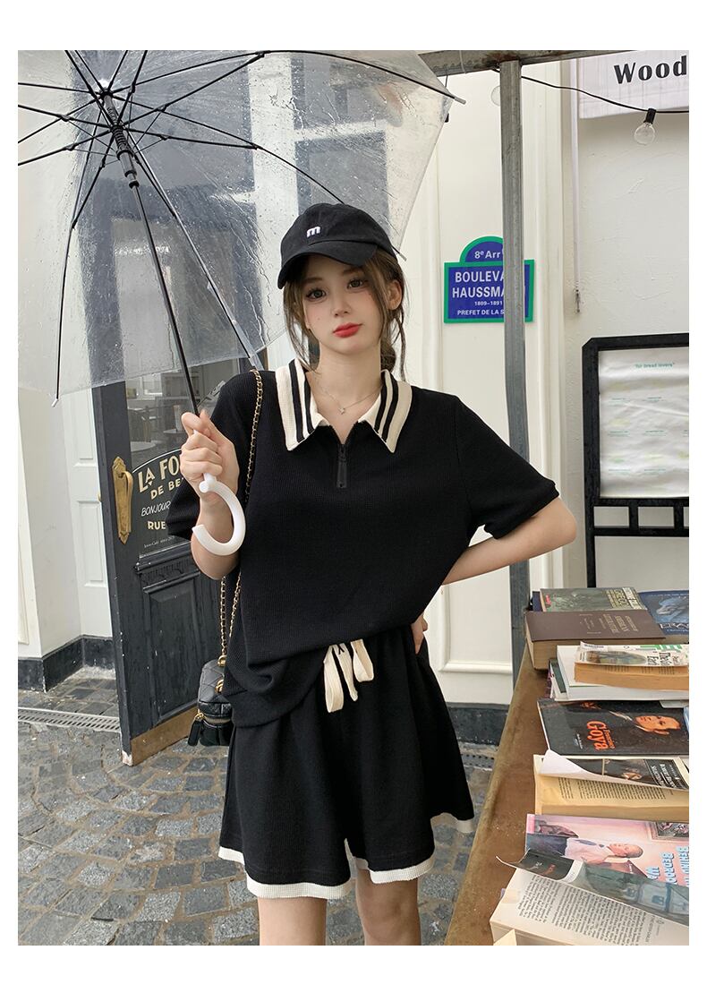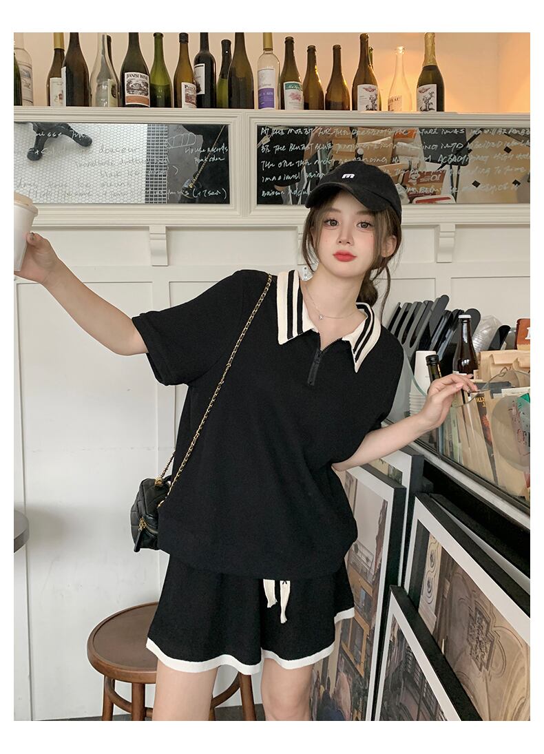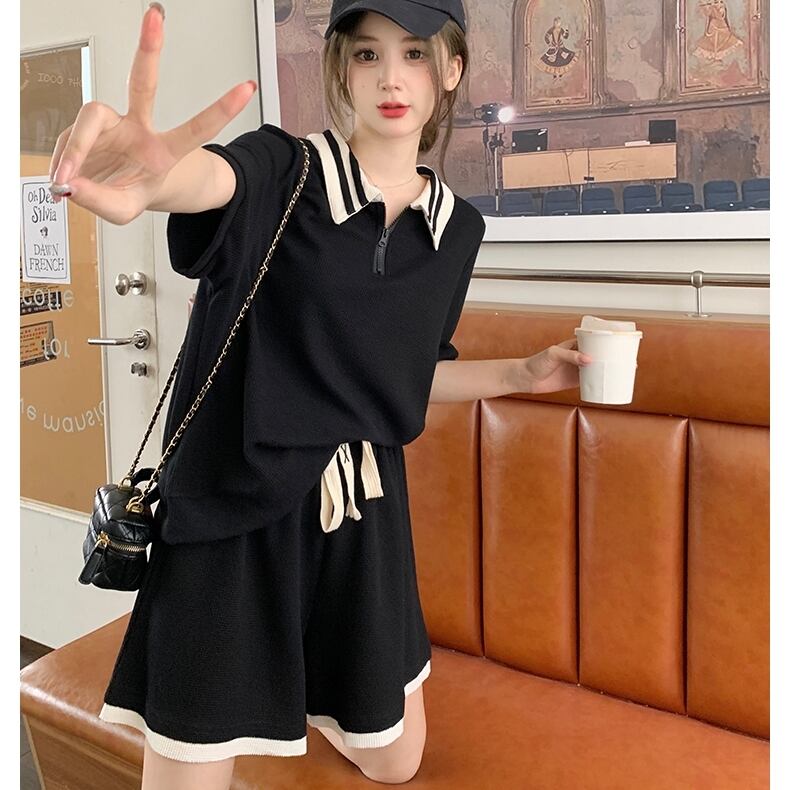 セットアップ レディース 2色 ツーピース ルームウェア L XL 2XL 3XL 4XL ブラック グレー 大きいサイズ ショートパンツ スウェット ジャージ ジップ 襟付き ショート丈 半袖 クルーネック かわいい 大人可愛い カジュアル おしゃれ お洒落 ナチュラル ルーズ リラックス レトロ 抜け感 爽やか 主役級 存在感 無地 学生 お泊まり 休日 運動 ジム ヨガ 春 夏 上下セット 2点セット 10代 20代 韓国 韓国系 着回し 体型カバー 楽ちん モテ インスタ 送料無料