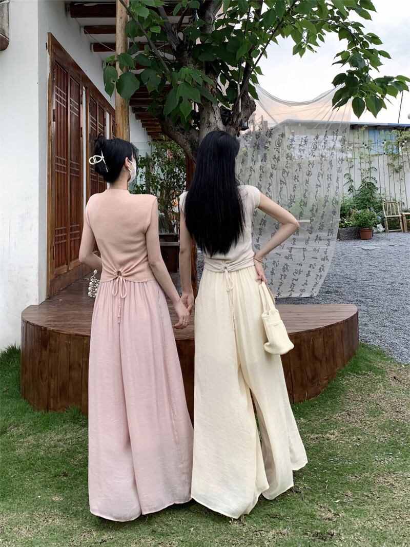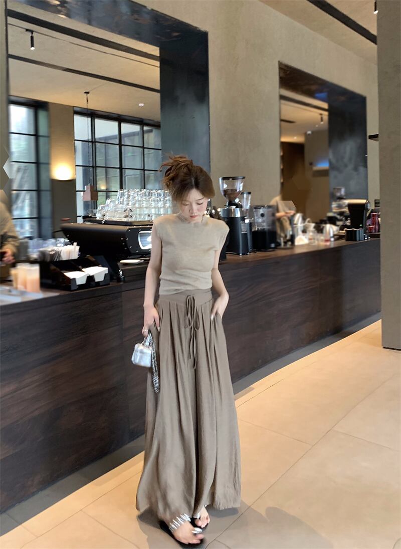 パンツ レディース ワイドパンツ ロングパンツ スカンツ ロング丈 モード系 薄手 透け感 ウエストゴム モノトーン かわいい 大人可愛い きれいめ エレガント 上品 おしゃれ お洒落 シック リラックス おとな ナチュラル 通勤 ガーリー OL 学生 通学 デート お出かけ 女子会 旅行 ブラウン ピンク アプリコット 春 夏 10代 20代 30代 40代 韓国 韓国系 着回し 普段使い ゆったり 体型カバー コーデ 韓国ファッション 旅行 ライブ コンサート リゾート 海 S M 送料無料