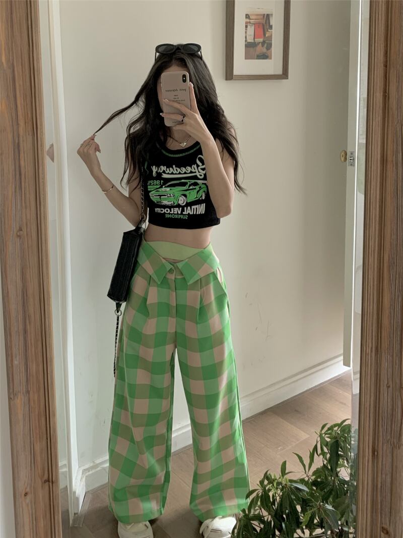 パンツ レディース ワイドパンツ ロングパンツ カジュアルパンツ イージーパンツ 可愛い かわいい 大人可愛い きれいめ ポップ 派手 上品 おしゃれ お洒落 おとな ナチュラル 抜け感 ラフ 通勤 ラブリー キュート ガーリー OL 学生 通学 デート お出かけ 女子会 休日 旅行 ピンク 緑 グリーン 春 夏 チェック柄 格子柄 10代 20代 30代 40代 韓国 韓国系 着回し デイリー 普段使い ゆったり 体型カバー コーデ 韓国ファッション 旅行 ライブ コンサート リゾート S M 送料無料