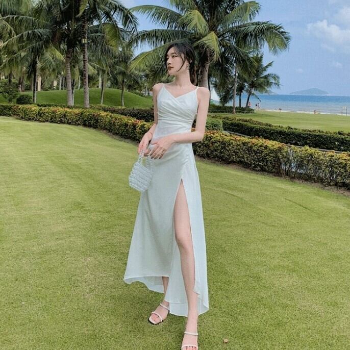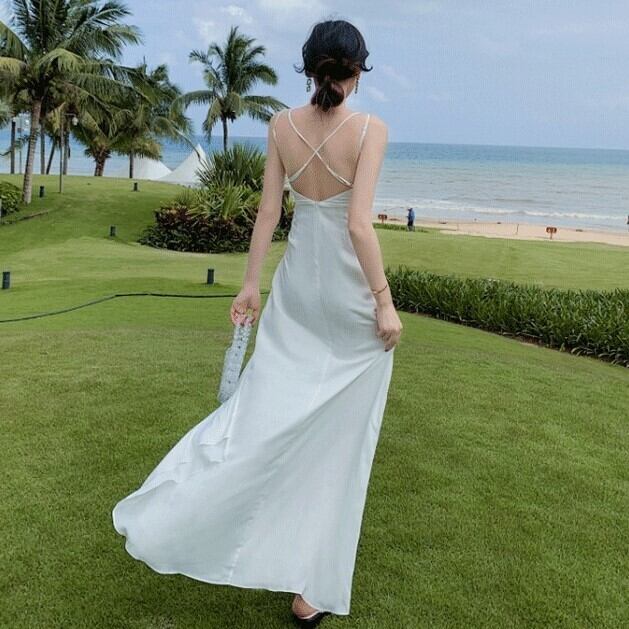 ワンピース レディース ロング ロング丈 キャミソール ノースリーブ スリット Vネック バックシャン かわいい 大人可愛い きれいめ カジュアル 大人 おしゃれ お洒落 こなれ感 ラブリー キュート セクシー エレガント 主役級 存在感 ナチュラル エキゾチック ロマンティック フェミニン 夏 10代 20代 30代 休日 リゾート 旅行 海 プール 着回し 韓国 韓国系 ファッション コーデ スタイル 楽ちん モテ トレンド 流行 インスタ映え S M L XL ゆったり ゆる 白 ホワイト 送料無料