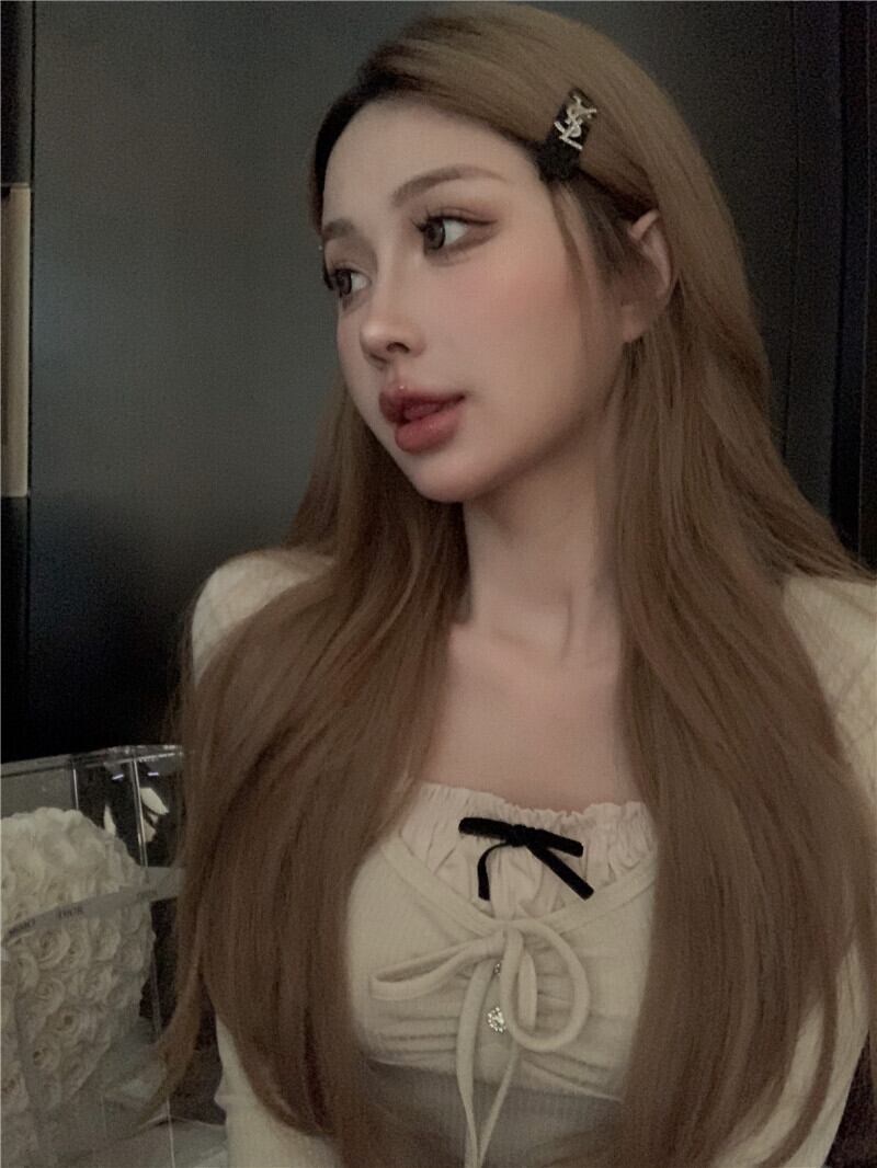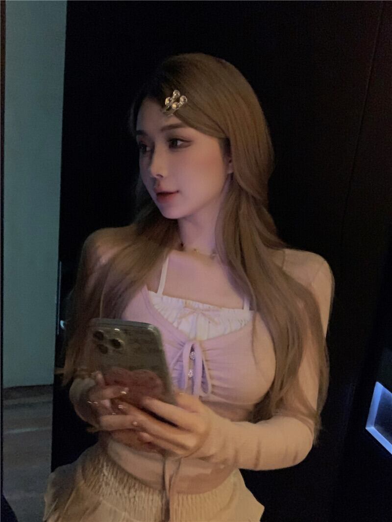バレエのお稽古着のようなデザインが可愛い♡丈感はクロップド丈で、ちょっとだけ明るいピンクでした♪163cmのスタッフは袖感も丁度良く、とにかく可愛いです!伸縮性があり、袖もぴったりとフィットしてくれて体のラインを拾う女性らしい1枚。胸元のドッキングデザインのキャミソールもポイントです。首の後ろで結ぶリボンも可愛い♡スカートともロングパンツとも相性◎バストの切り替えしも特徴的なので、スレンダーさんや低身長さんにもおすすめアイテム♪