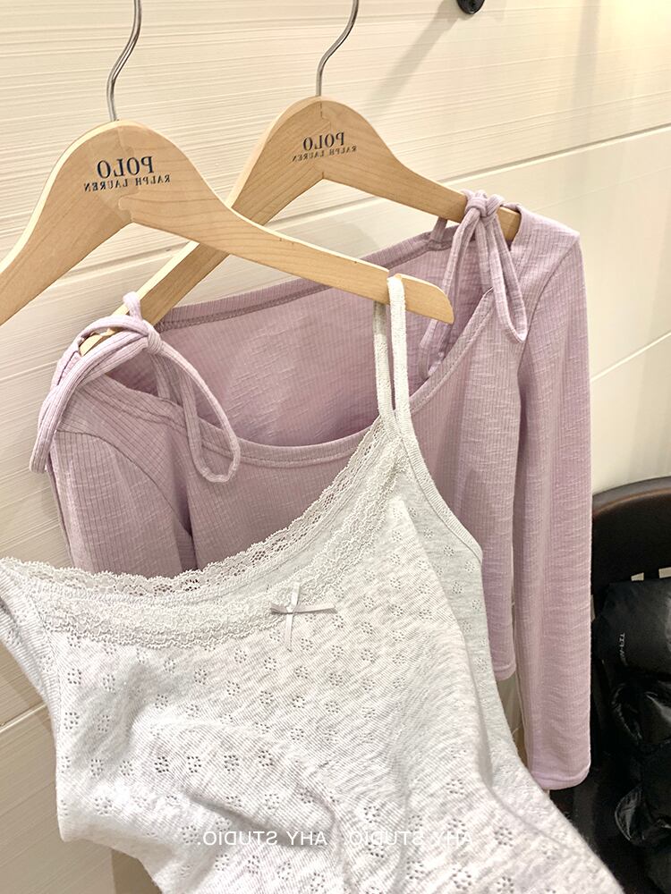 トップス レディース セットアップ アンサンブル S M L XL ピンク パープル ダークグレー カーディガン ボートネック レース リボン キャミソール クロップド丈 袖あり 長袖 サマーニット 透け感 薄手 かわいい 大人 可愛い シンプル カジュアル 上品 清楚 おしゃれ お洒落 こなれ感 ガーリー リラックス 抜け感 学生 デート お出かけ 女子会 休日 イベント 街歩き 公園 春 秋 10代 20代 30代 韓国 韓国系 普段使い 楽ちん トレンド コーデ 送料無料