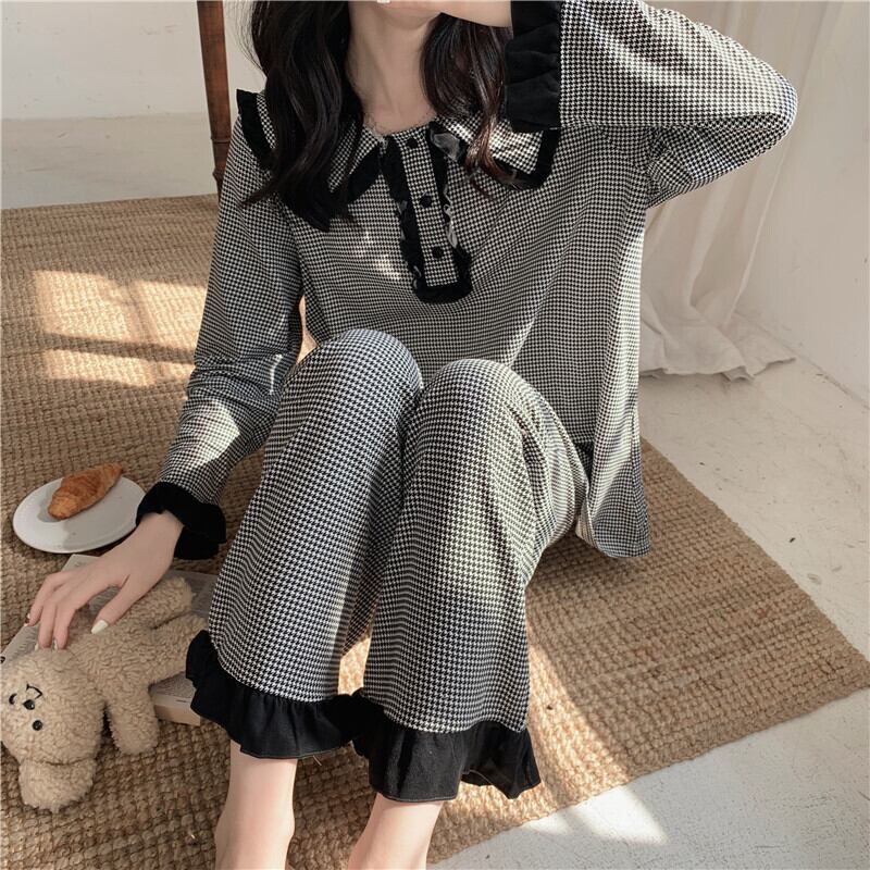 ルームウェア レディース 上下セット ワンサイズ パジャマ 長袖 ワイド フリル リボン ギンガムチェック かわいい 大人可愛い カジュアル 清楚 フェミニン おしゃれ 綺麗 お嬢様 こなれ感 ラフ ラブリー キュート ガーリー ルーズ リラックス 抜け感 華やか 存在感 主役級 格子柄 お泊まり 休日 旅行 休暇 フリーサイズ グラック 春 秋 冬 オールシーズン 2点セット ツーピース 10代 20代 韓国 韓国系 体型カバー 楽ちん ギフト プレゼント トレンド 送料無料