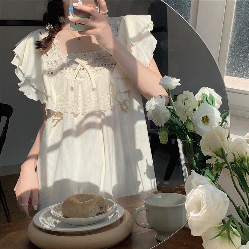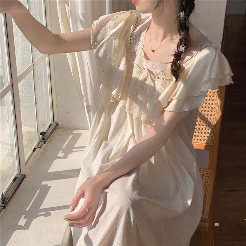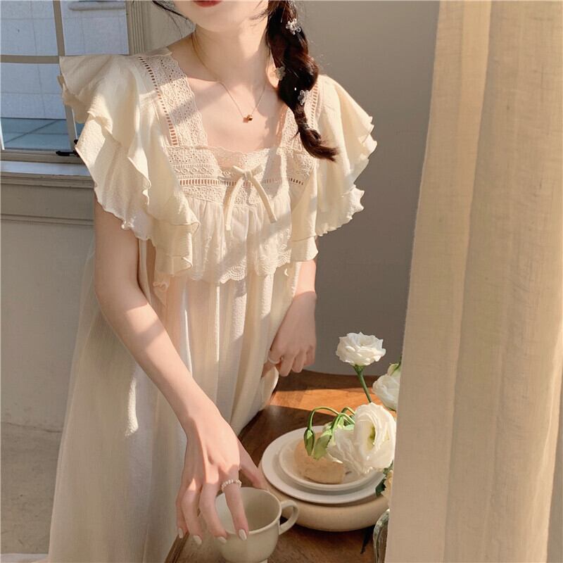 ワンピース レディース ルームウェア 部屋着 寝間着 お家コーデ ロング ロング丈 半袖 スクエアネック レース フリル かわいい 大人可愛い きれいめ 上品 エレガント 清楚 フェミニン おしゃれ お洒落 綺麗 お嬢様 おとな ナチュラル こなれ感 リラックス レトロ ロマンチック 抜け感 華やか お泊まり 休日 フリーサイズ ゆったり ゆる ベージュ 夏 10代 20代 韓国 韓国系 体型カバー 楽ちん ワンマイルウェア ファッション コーデ モテ トレンド 流行 インスタ 送料無料
